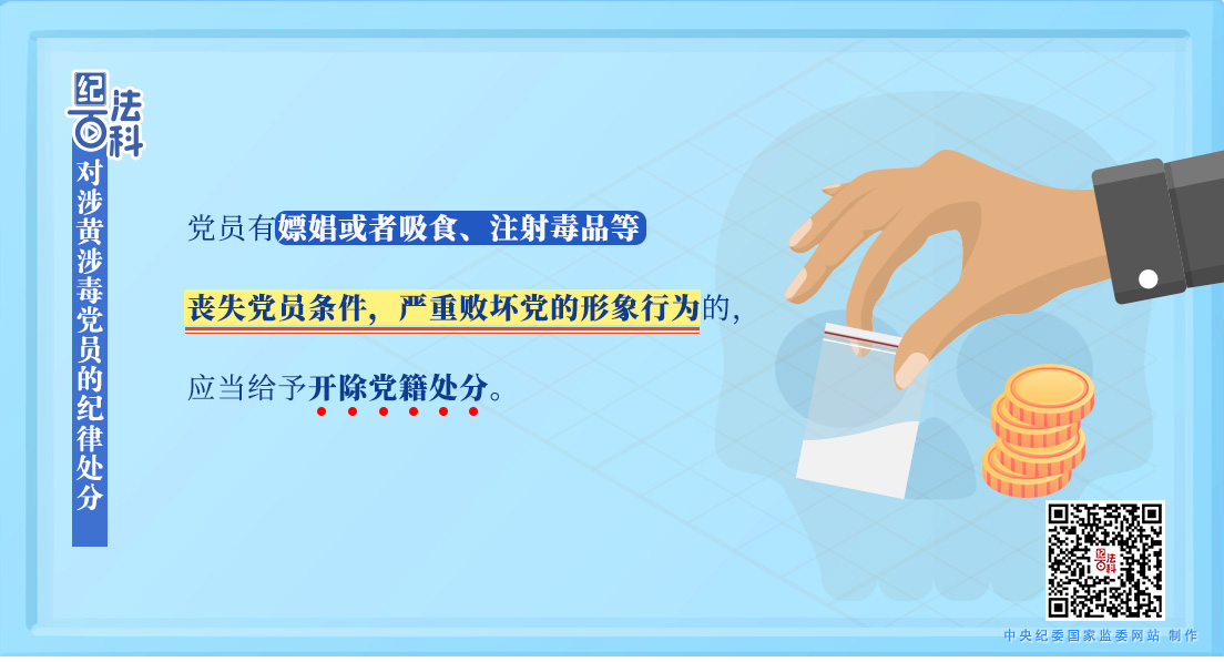 《中國(guó)共產(chǎn)黨紀(jì)律處分條例》第三十條第三款規(guī)定,黨員有嫖娼或者吸食、注射毒品等喪失黨員條件,嚴(yán)重?cái)狞h的形象行為的,應(yīng)當(dāng)給予開(kāi)除黨籍處分。