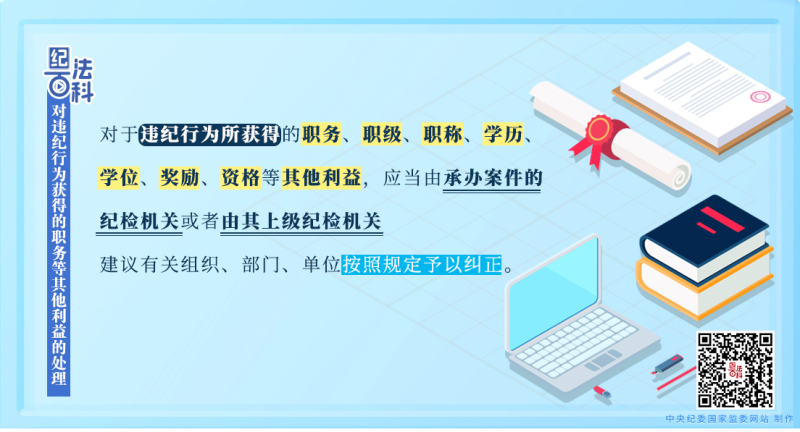 《中國共產(chǎn)黨紀律處分條例》第四十三條規(guī)定:對于違紀行為所獲得的職務(wù)、職級、職稱、學(xué)歷、學(xué)位、獎勵、資格等其他利益,應(yīng)當(dāng)由承辦案件的紀檢機關(guān)或者由其上級紀檢機關(guān)建議有關(guān)組織、部門、單位按照規(guī)定予以糾正。