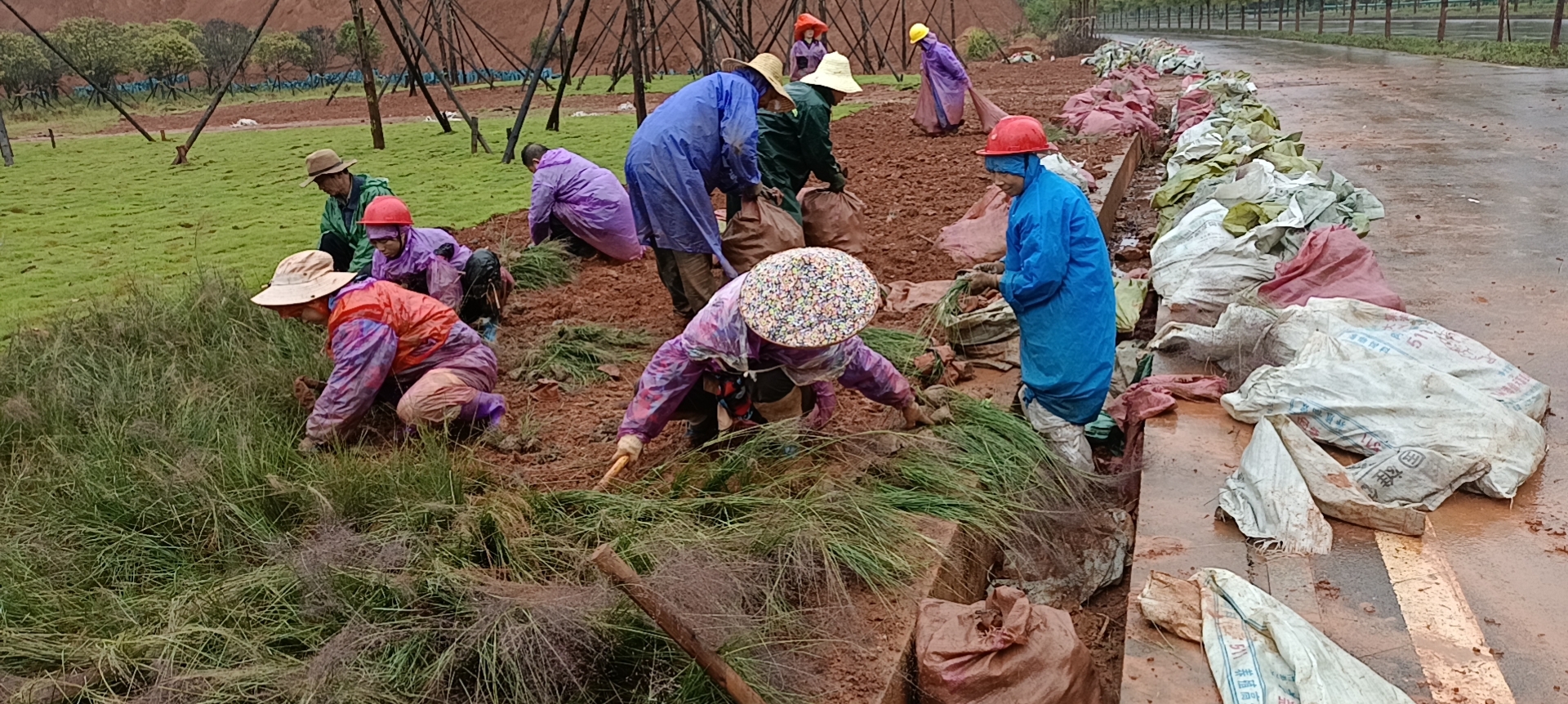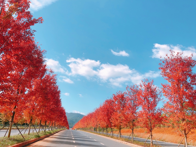 紅楓大道以及紅楓大道兩廂沿線紅楓增色增量,邊坡復(fù)綠豐富紅楓品種,延續(xù)紅楓主題;道路沿線設(shè)置綠化及對部分地段的輔道外圍區(qū)域進行草皮綠化。